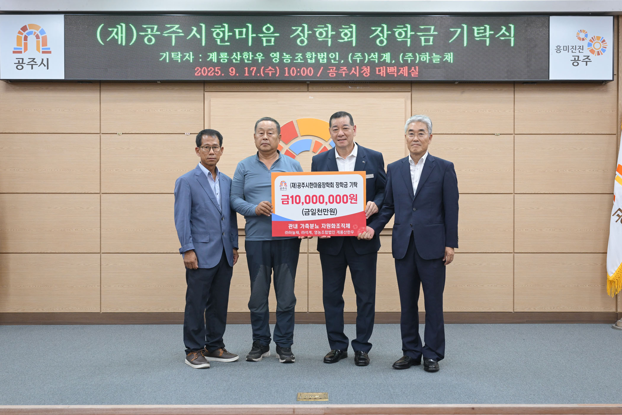 2025년 9월 17일 (재)공주시한마음장학회 장학금 기탁식 계룡산한우 영농조합법인 (주)석계 (주)하늘채 [대백제실]