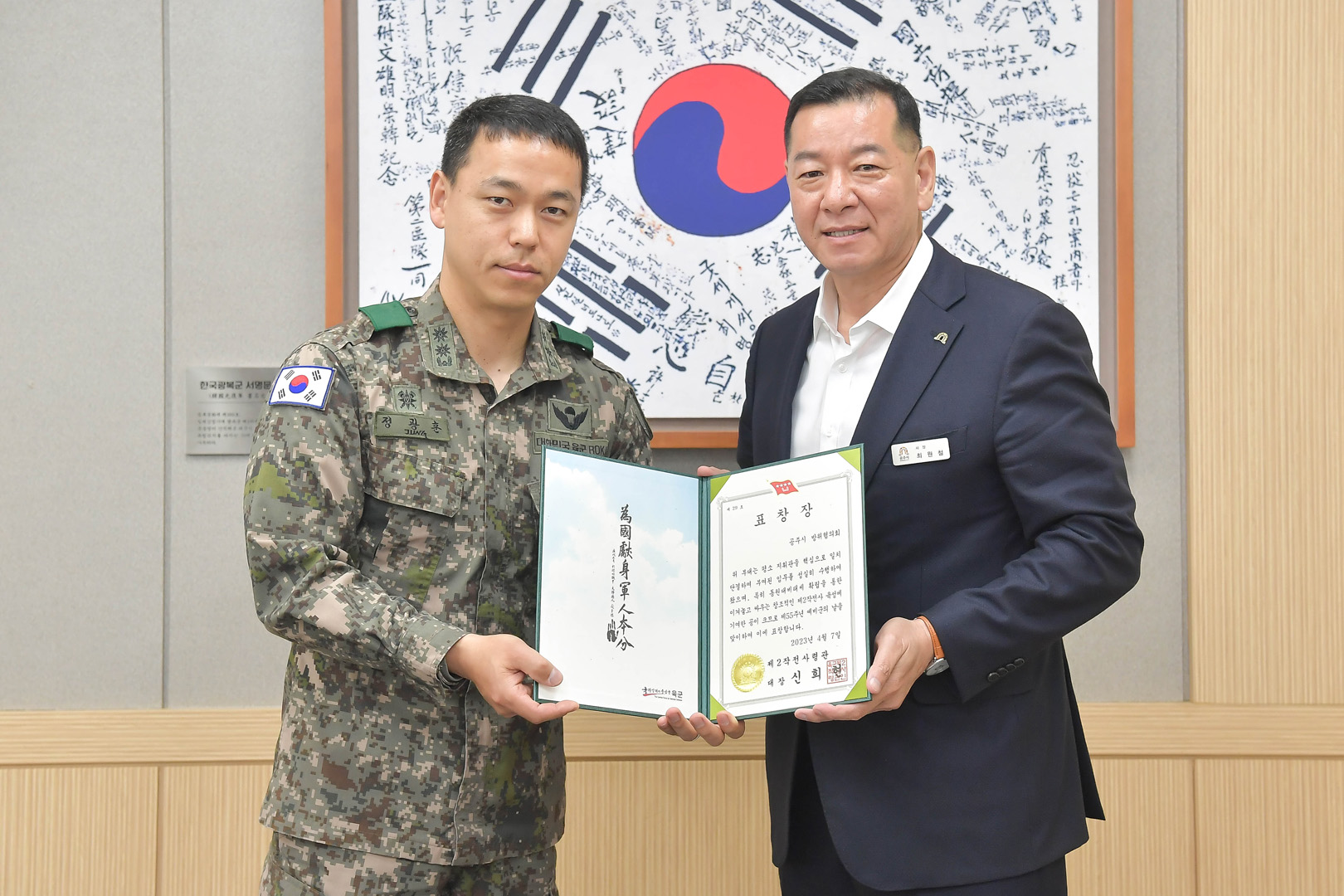2023년 4월 7일 제55주년 예비군의 날 통합방위유공 기관표창 전달식